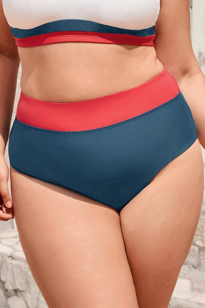 Get ready for the Fourth of July in this pair of bikini bottoms featuring a colorblock design, banded high-rise waist, and classic bum coverage.