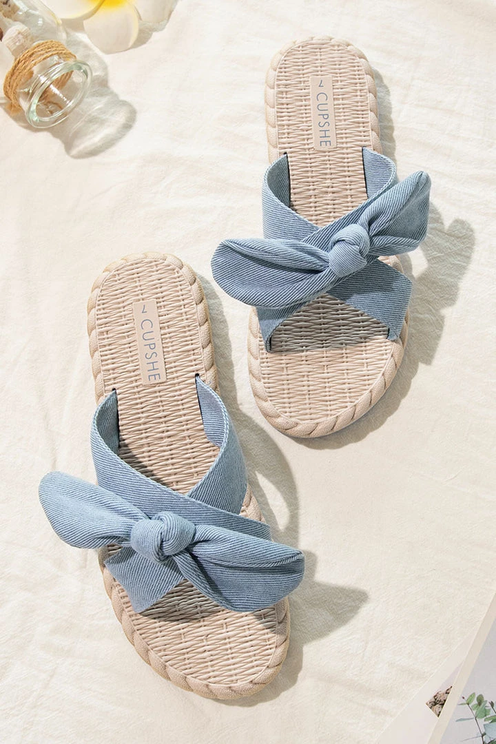 Our Cloverfield Crisscross Bow Knot Slide Sandals is a bow design slide sandals provide a casual yet chic summer staple; Open-toe design offers easy wear and lasting comfort; Crisscross upper and braided jute-like outsole lend a textured look; Easy to pair with a variety of outfits for versatile styling options.