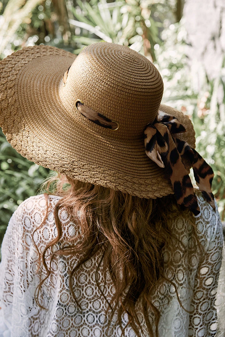 Featuring a leopard tie, this Hania Brown Summer Hat is very Hawaiian, perfect for everyday wear or holiday travel.