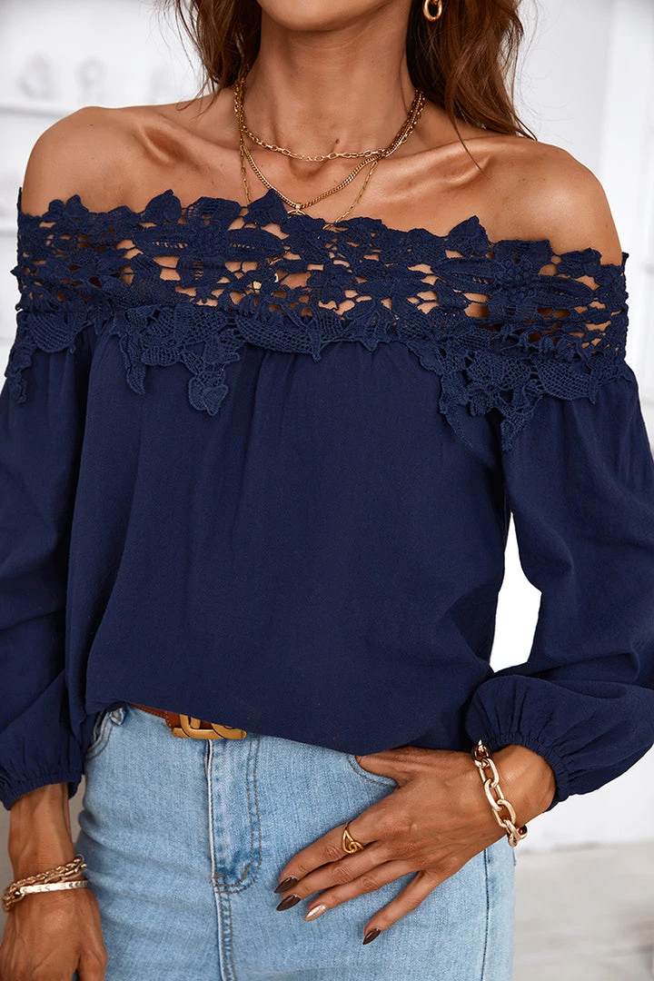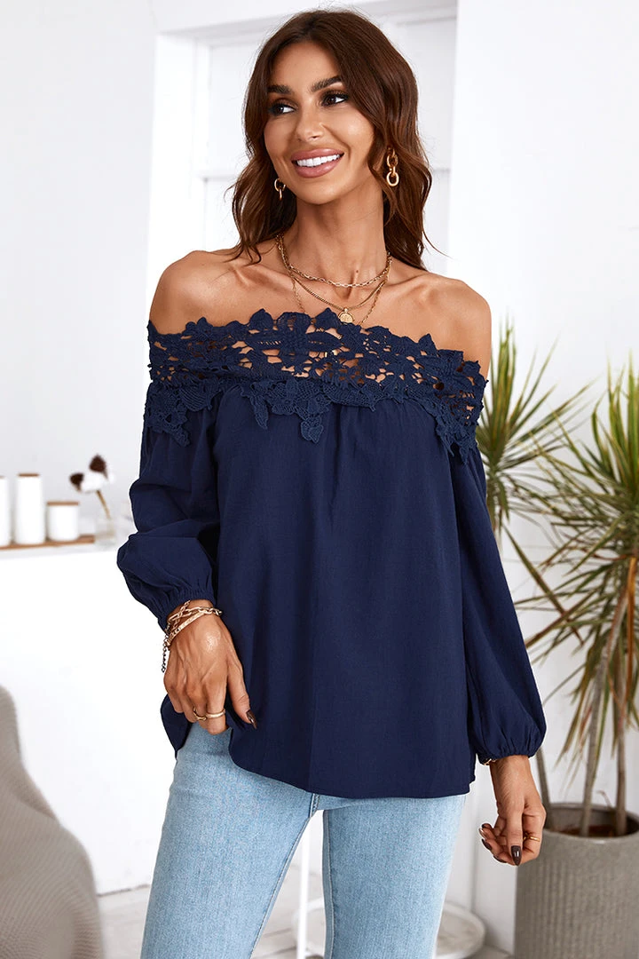 Step into the new season in style with this top. Featuring long sleeve, contrast lace and loose. Perfect to wear to work and for casual days out.