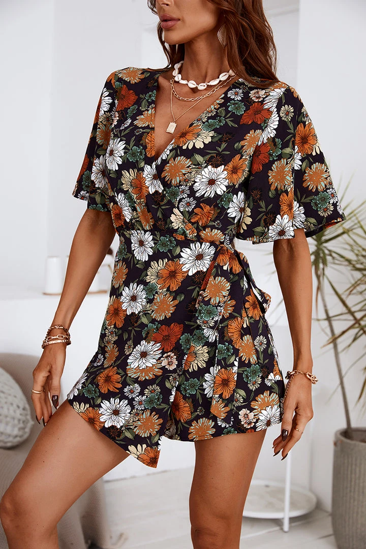 Give your wardrobe an update with this Lace Up Wrap Floral Jumpsuit. Featuring a multi floral print, a wrap design, and lace up detailing.