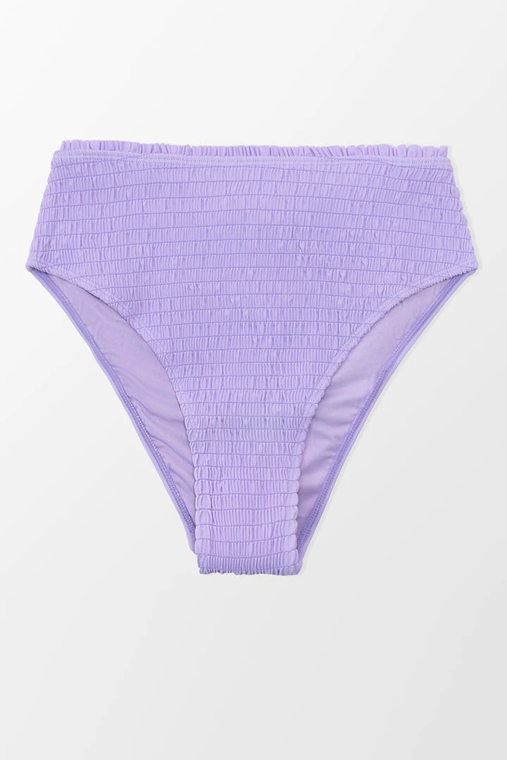 Allyssa High Waisted Smocked Frill Bikini Bottom is perfect for the beach. The high-waisted bottom offers the perfect amount of coverage for all body types. Finish the look with Allyssa Halter Smocked Frill Bikini Top.