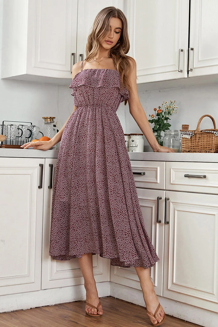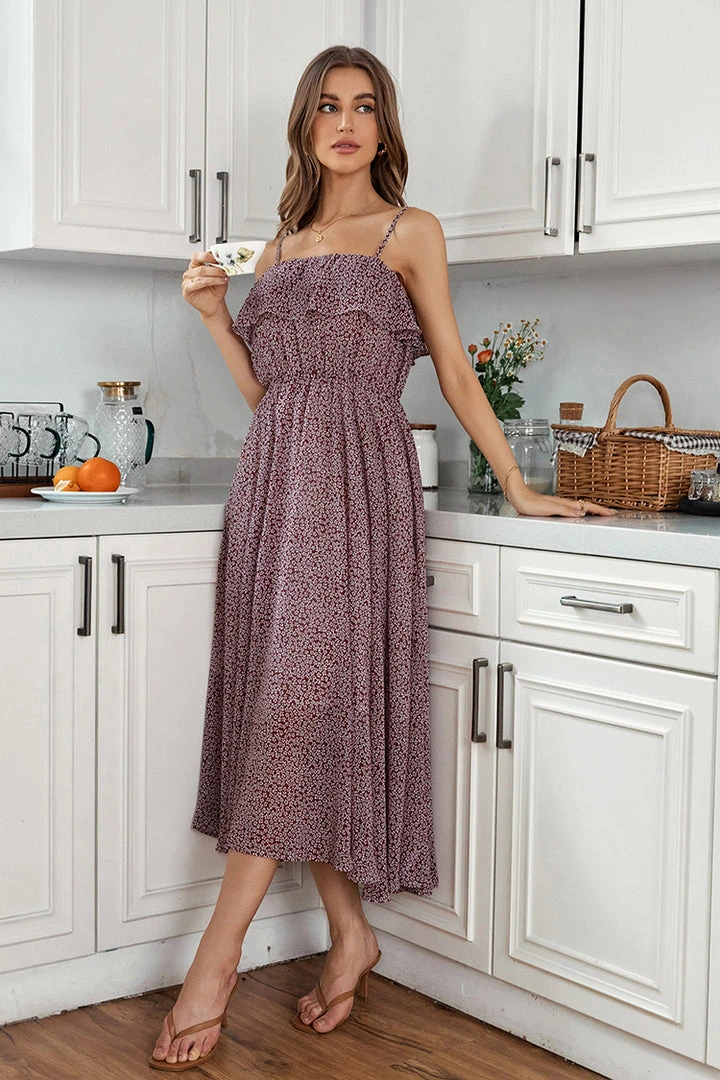 Our Alvina Thin Straps Elastic Waist Ruffle A-Shape Dress features elastic waist and ruffle, it’s a great choice for a date or everyday wear.
