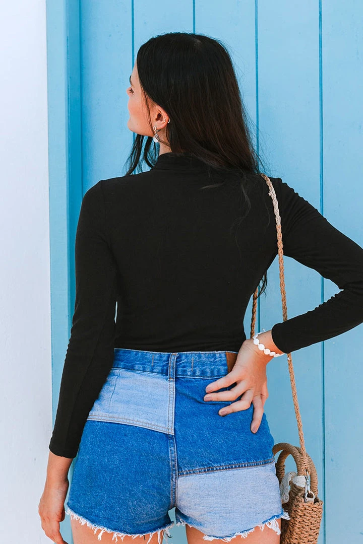 Alycia Black High Neck Cut Out Bodusuit looks great with anything. Featuring a body shaping fit and high neckline,cut outs on the front, style with jeans and white boots for an ultimate effortless chic look.