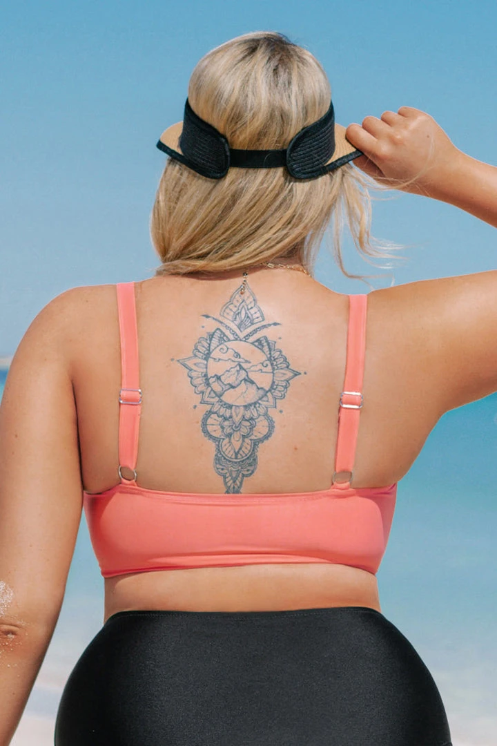 Get ready to roar in Ana Ruched Plus Size Bikini Top. Features ruched and crisscross at the bust. Complete the look with our Ana High Waisted Plus Size Bikini Bottom.