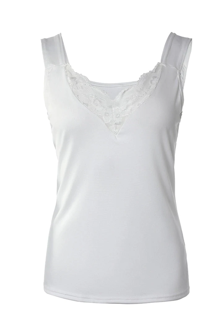 This Contrast Lace Sleeveless Vest Top has a close fit and a cute neckline framed by wide straps and features contrast lace design. Perfectly versatile and easy to style.