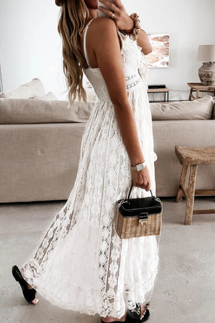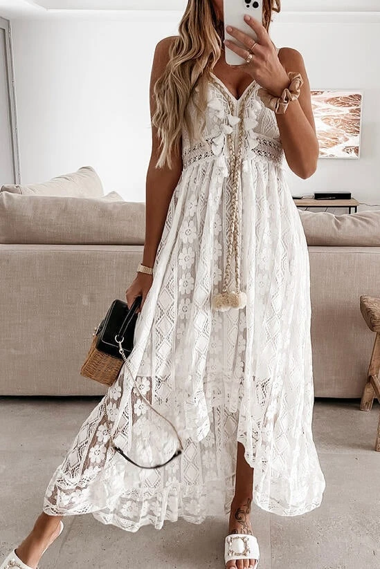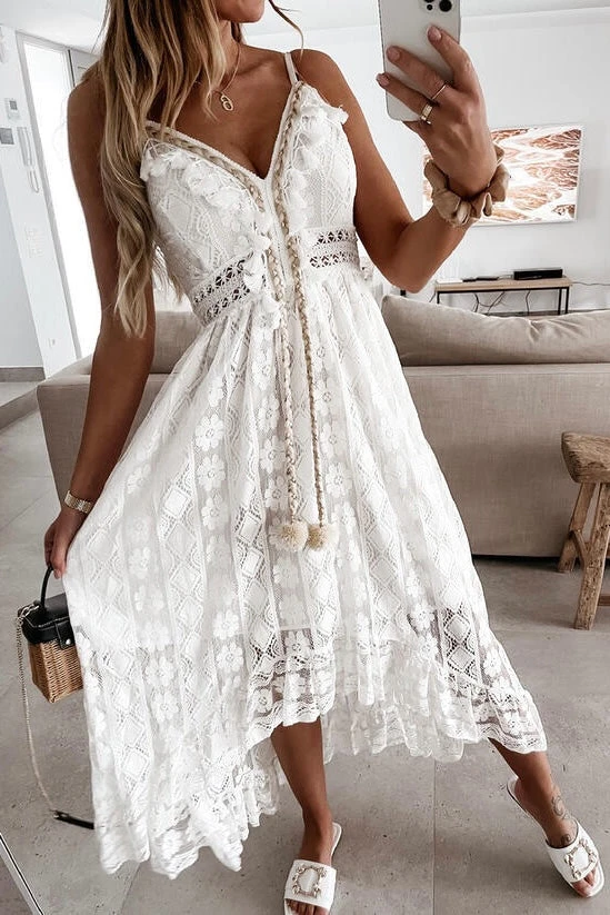 You can not miss this Ariya V-neck Lace Up Slip Dress in summer. Our dress features adjustable straps and smocking design. It is perfect for a vacation.