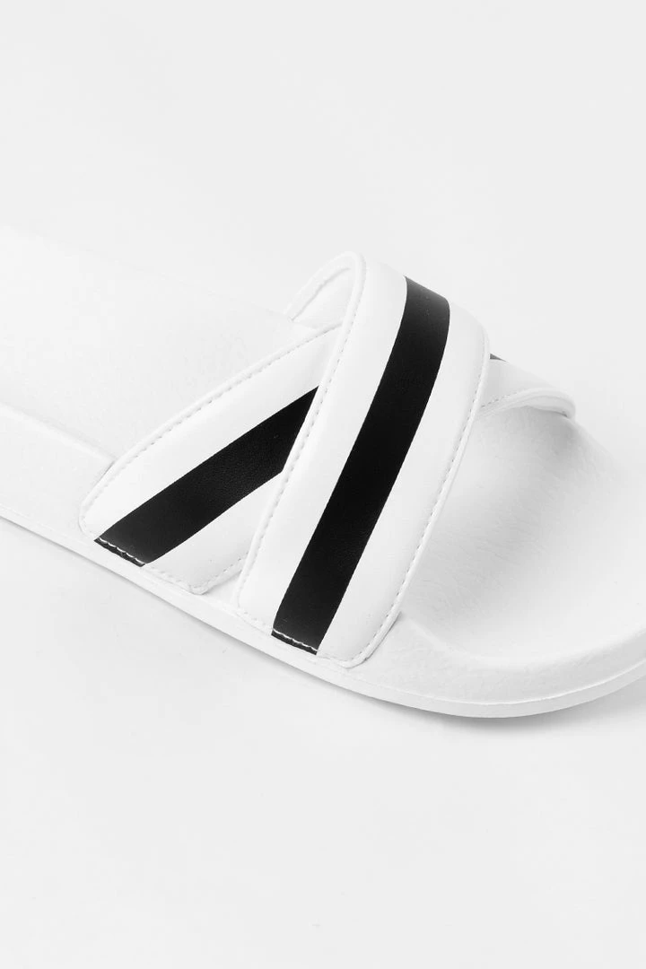 With a flat bottom, these Baker Beach Black White Stripe Slippers conform to the line of the foot and are very comfortable to wear, making them ideal for beach trips.