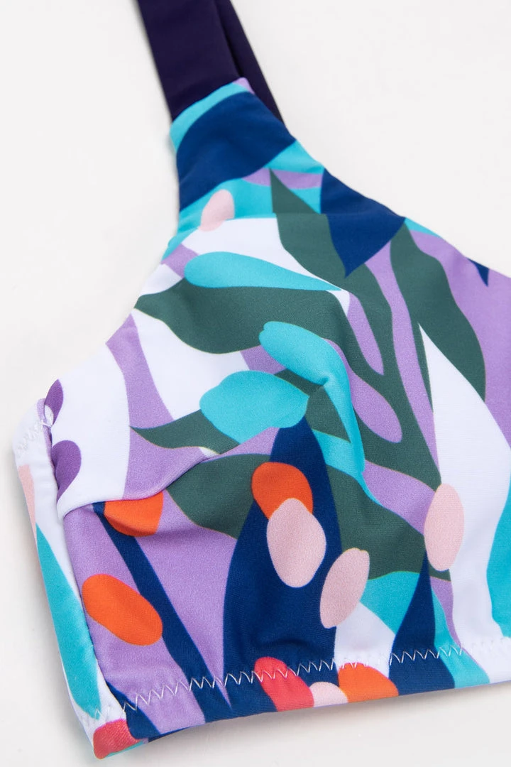 Soak up the sun in the Barbara Leafy Tank Bikini Top. The bikini top has contrast wide straps makes this tank top extra flattering.