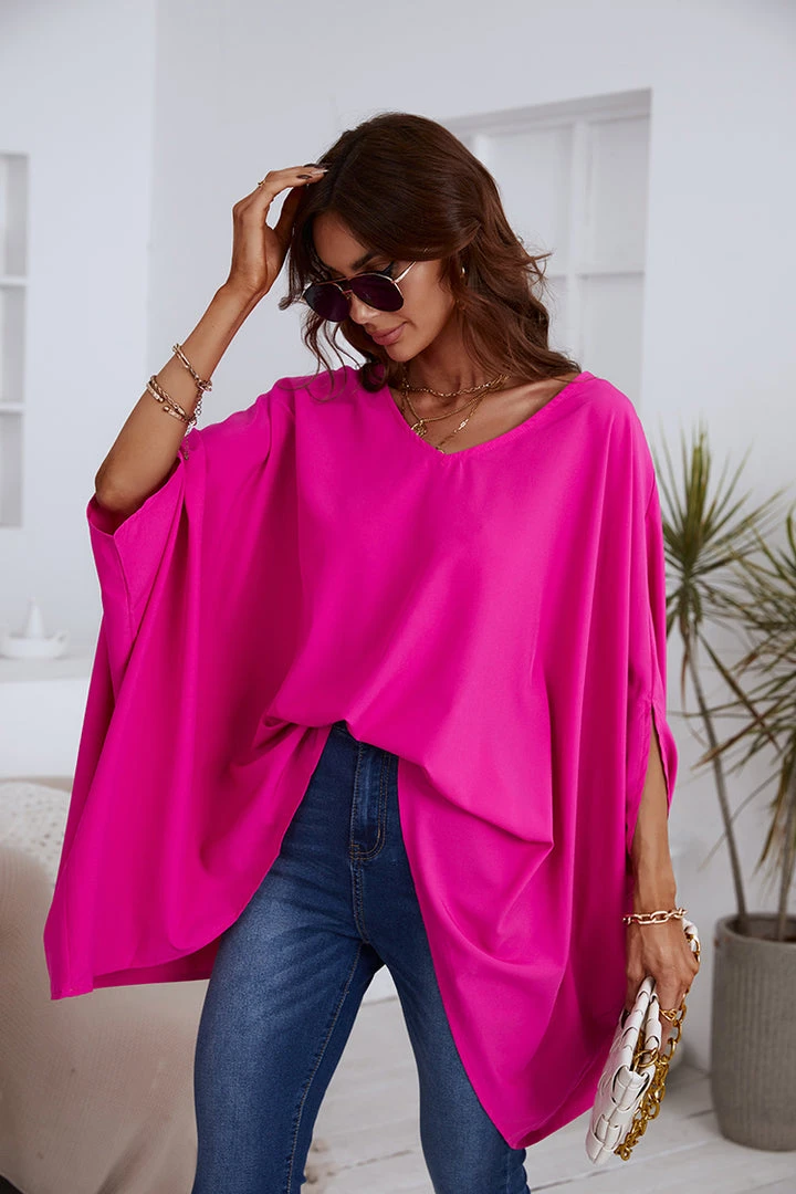 Our V-neck Short Sleeve Loose Waisted Top features short sleeve and V-neck design. It’s a great choice for a date or everyday wear.