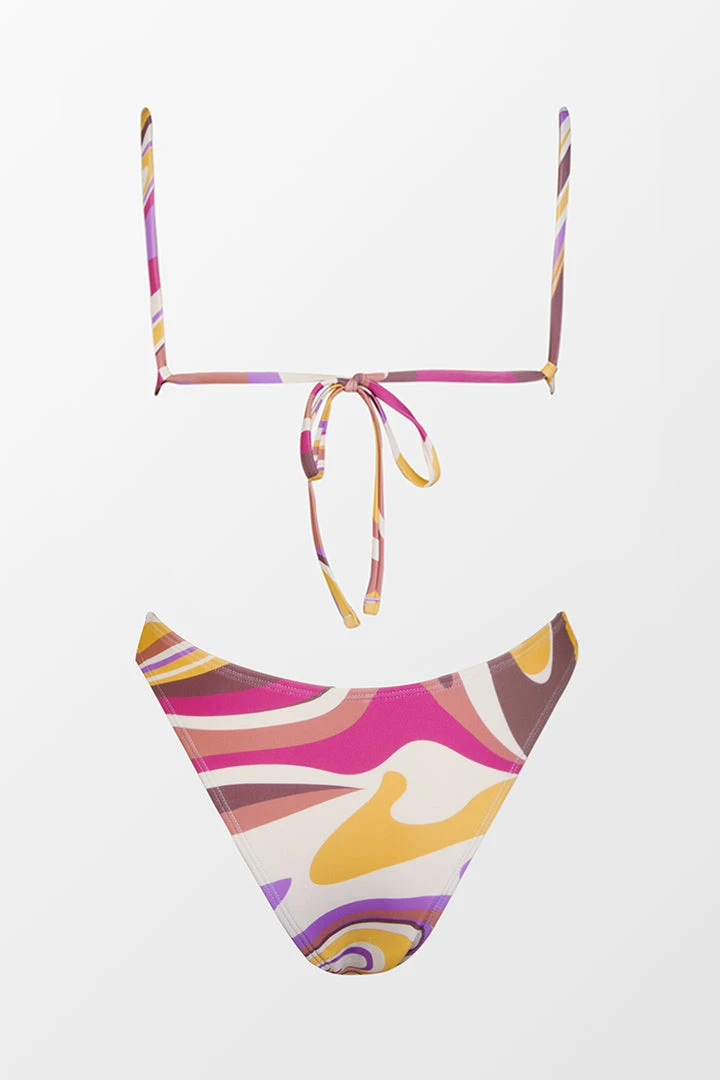Look ultra groovy in the Amethyst Waves Bandeau & Cheeky Hipster Bikini Set. This retro Bandeau with adjustable straps is perfect for babes who love a little color in their life. Features an ultra cheeky bikini bottom to make it extra flattering.