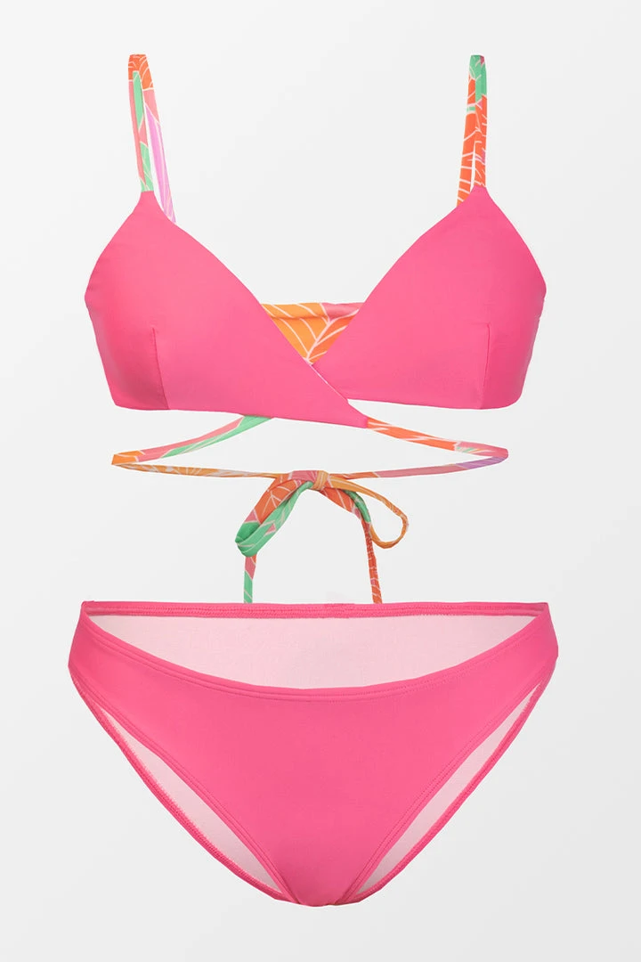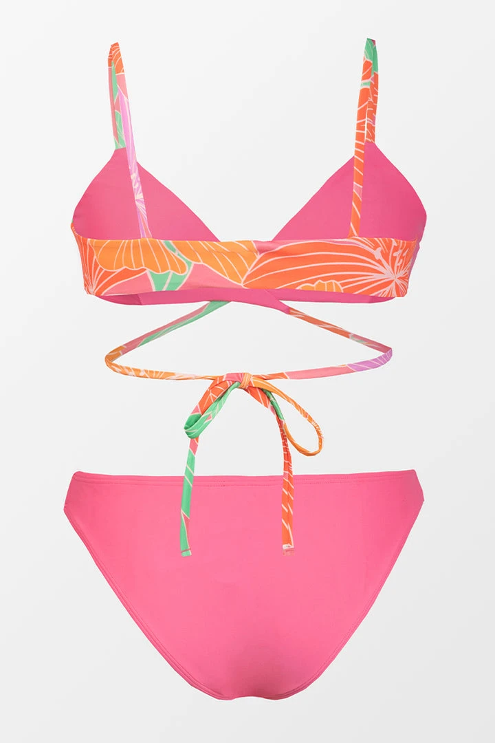 Elevate your new-season looks with the Floral Impressions Reversible Triangle and Hipster Bikini Set. The added string wrapping around the body with a back tie creates this ultra-sexy triangle bikini top. Pair with the matching solid-color hipster bottom or mix patterns if you’re feeling daring!