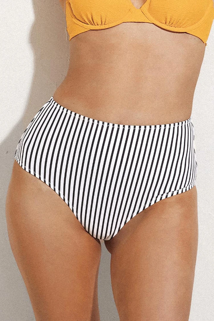 Stay on trend with the Striped High-Waisted Bikini Bottom. This stripe bikini provides flattering tummy coverage and support.
