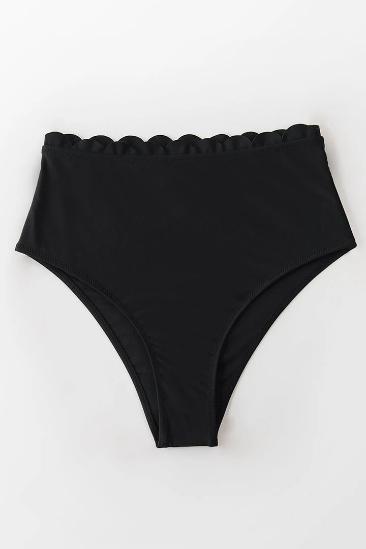 Fun and cute! Our Black Scalloped High Waisted Bikini Bottom features a high waisted silhouette with scalloped trim.