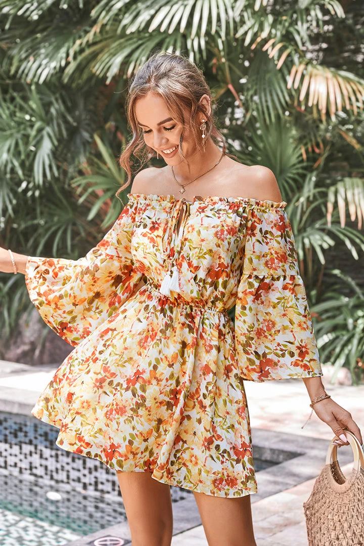 This Carlene Fringe Elastic Waist A-Shape Dress is very beautiful. It adopts very youthful and lively colors. The off-shoulder design can show your figure very well. You will be very attractive in it.