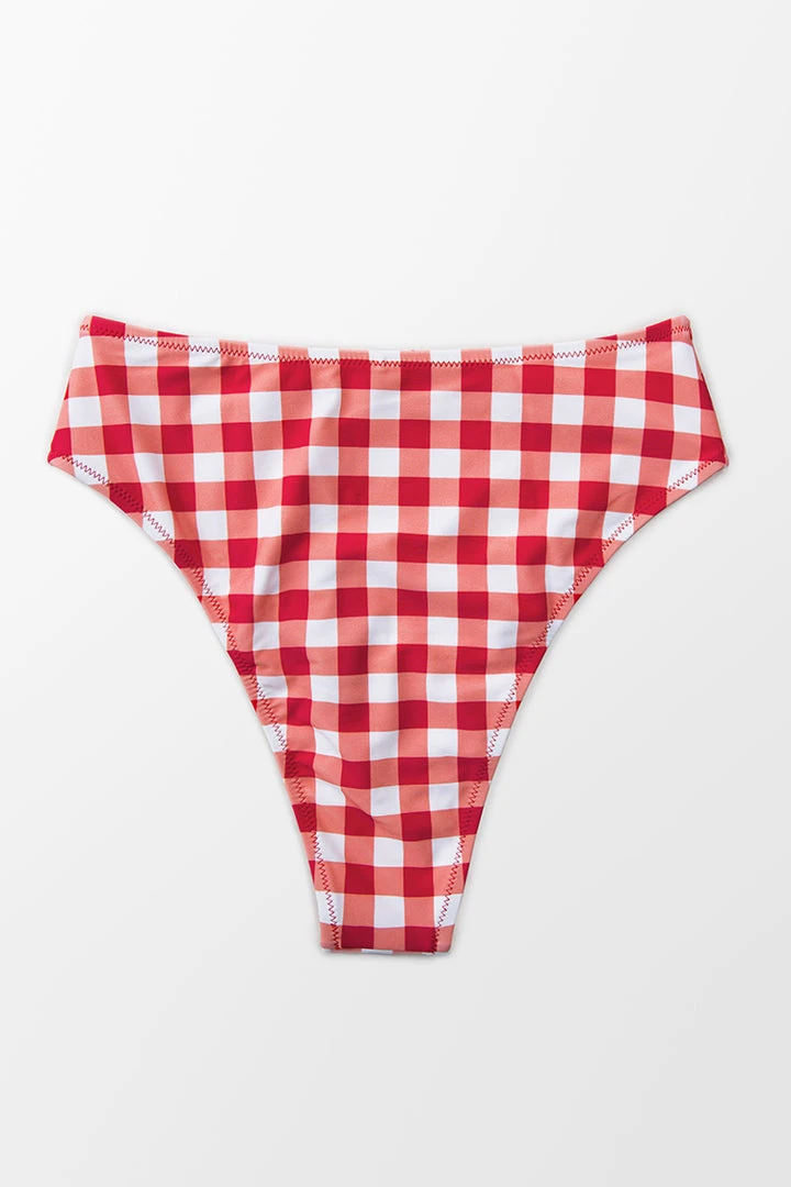 Simply stylish, the Catalina Red Gingham High Waisted Bikini Bottom is everything you need for fun in the sun. Red gingham print brings a sense of feminine. High-waisted bottom offers enough coverage and comfort.