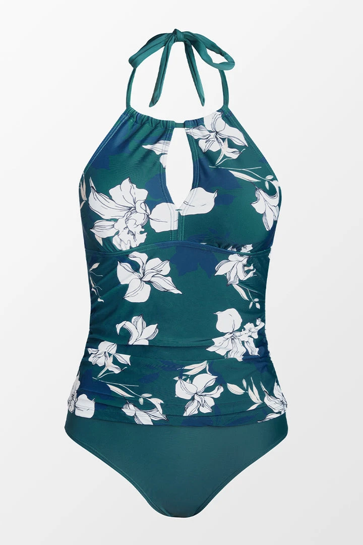 Bring beautiful florals to your poolside look with Charmed Romance Keyhole Tankini & High Waist Bikini Bottom Set. The pretty tankini has a highneck silhouette with keyhole detail. Complete the fit with the solid high waist bikini bottom.