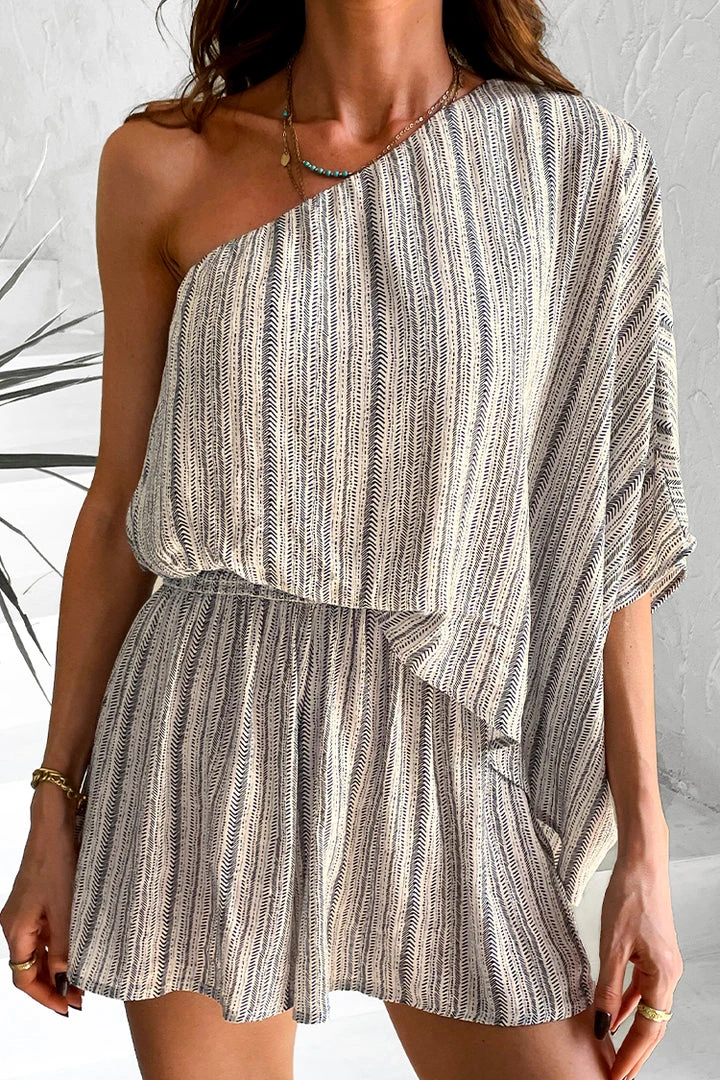 Never be without a perfectly romantic look with the One Shoulder Loose Woven Jumpsuit. It features one shoulder and a loose design. This design is suitable for most body shapes.