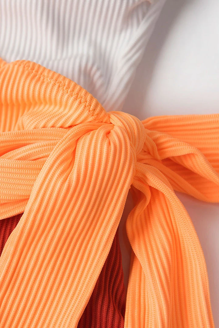 Bright and vibrant! Take this Colorblock Plunging One-Piece Swimsuit for your next beach adventure. Features a plunging neckline and tie waist. This swimsuit is so flattering for every body.