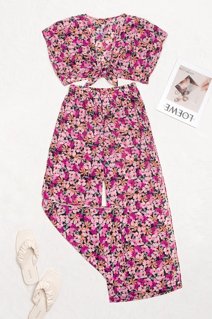 You’ll live in the new Floral Impressions Set! This set features a cropped tie front top and wide legged palazzo style pants that split on both sides.