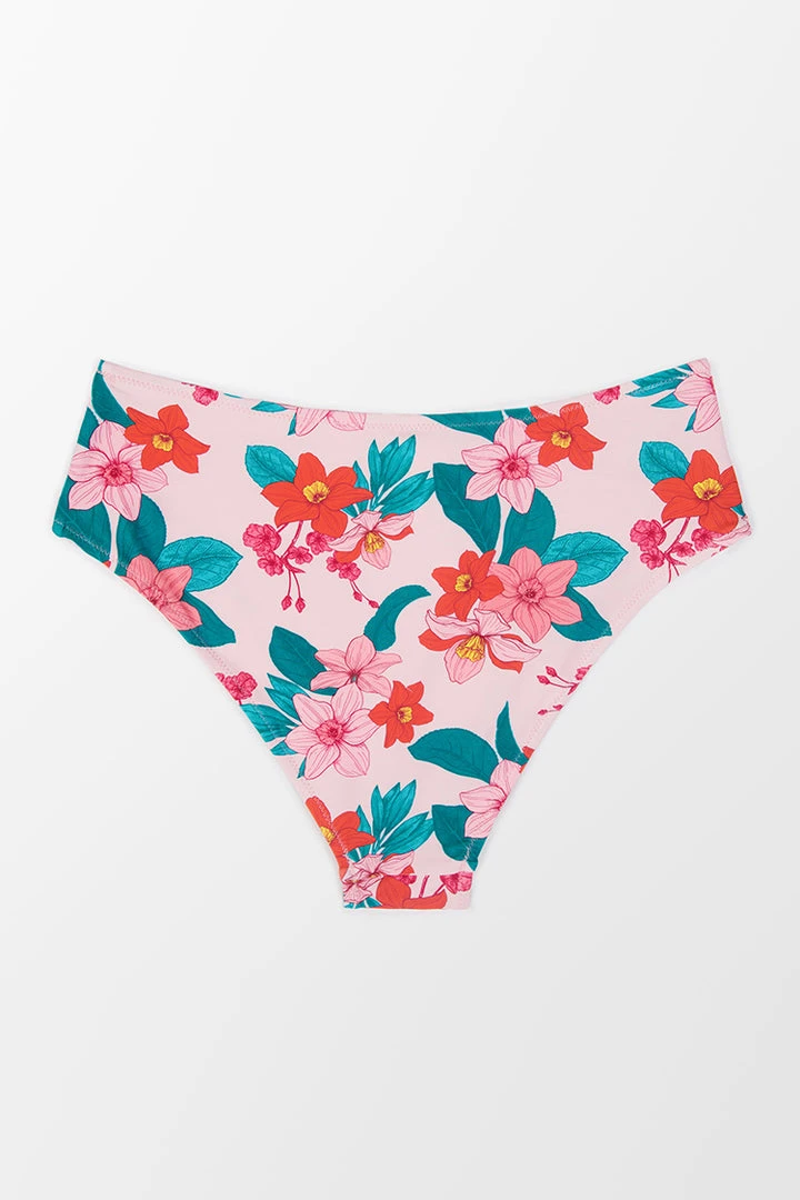 Turn heads in our Dayana Floral Mid Waisted Bikini Bottom. Features floral print with mid waisted fit. Matching with our Dayana Ruched Front Tie Back Bikini Top.