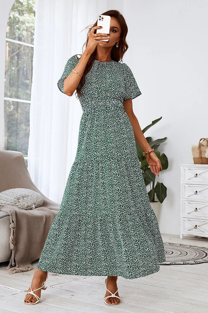 This Round Neck Smocking Dots Pattern Dress is very elegant. With the design of round neck and normal sleeves, it is very suitable for both work and daily leisure.