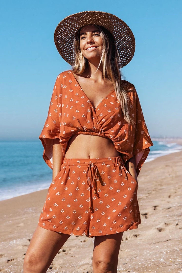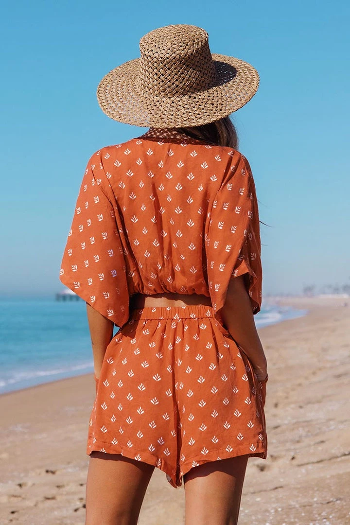 Refreshing and fun, this Diane Geometric Print Cover Up Set is made for fun in the sun! Features v-neckline, crop elastic waist and drawstring elastic waist