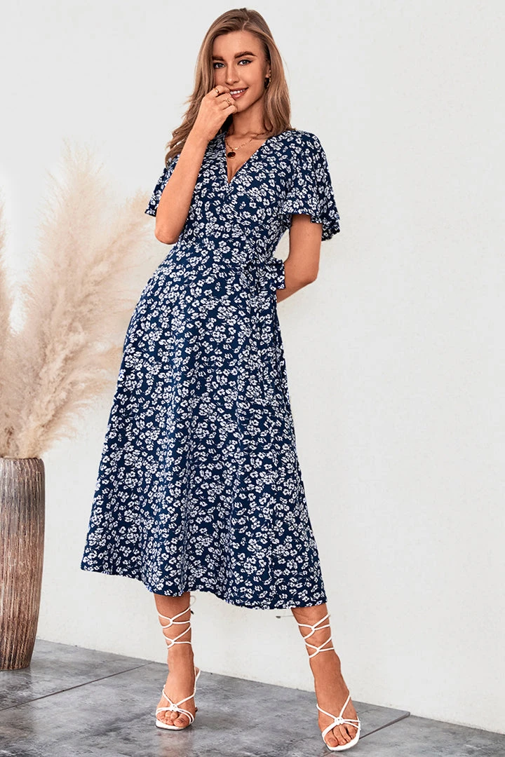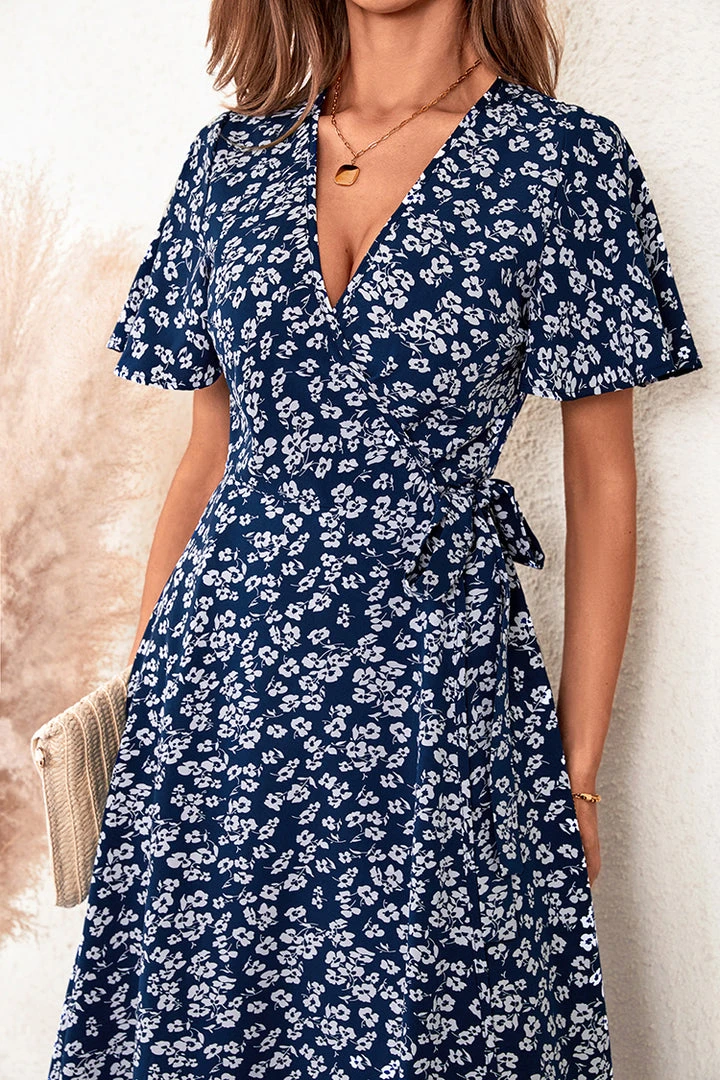 You must not miss this V-neck Tie Waist Lace Up A-Shape Dress of our. This dress features elegant disty and set in sleeve design.