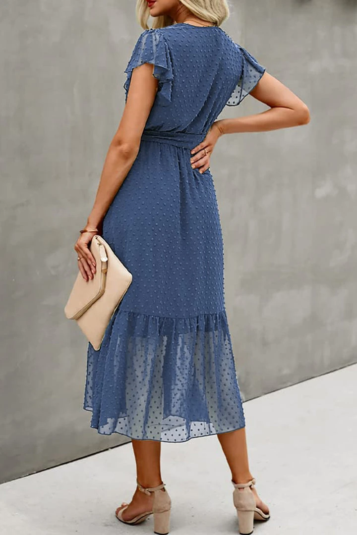 Get ready for that upcoming occasion with this dress. Featuring tie waisted and a v-neck design. Simply style this with strappy heels and a mini bag to complete the look.