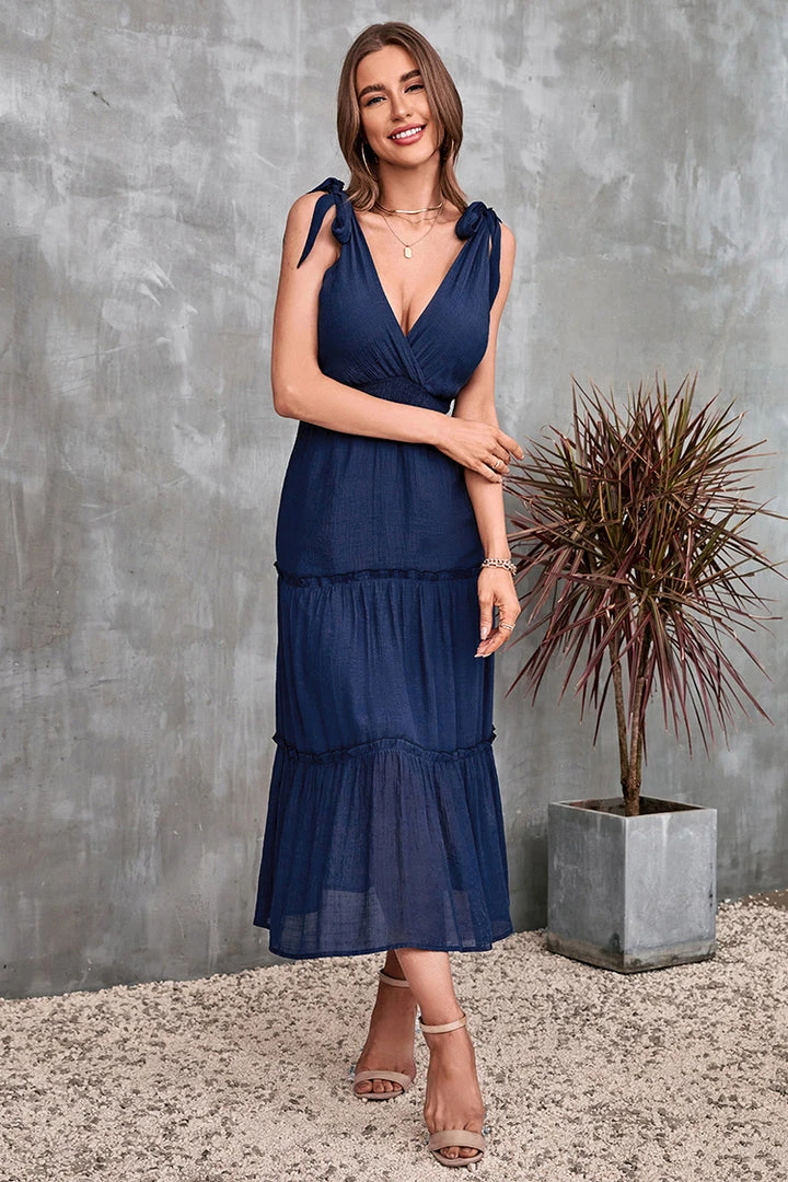 This Plunge Wide Straps Elastic Waist A-Shape Dress features wide straps, the plunge design makes you more sexy and charming and the comfortable fabric adds to your wearing experience.