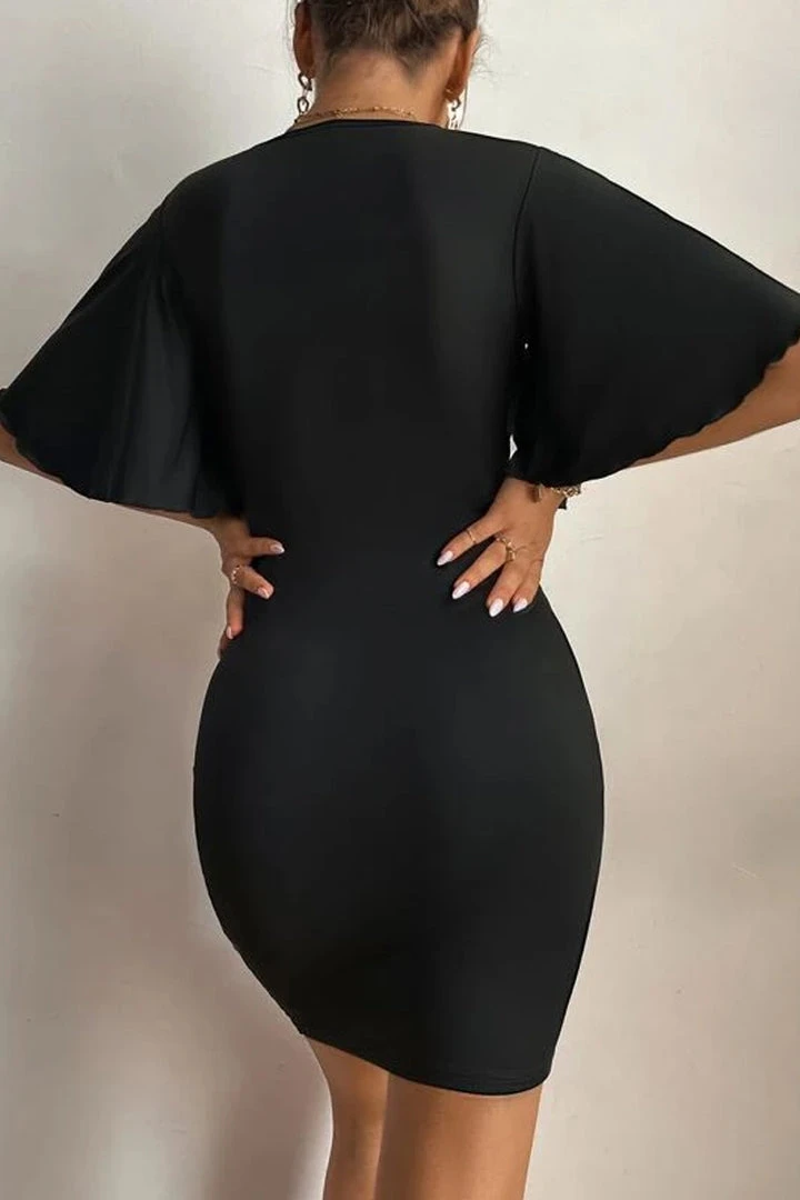 Get occasion ready in this Mid Length Ruching Frill Dress. Featuring ruching detailing and flared sleeves, we are in love. Style with high heal and a matching small bag to steal the look.