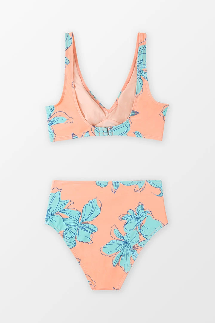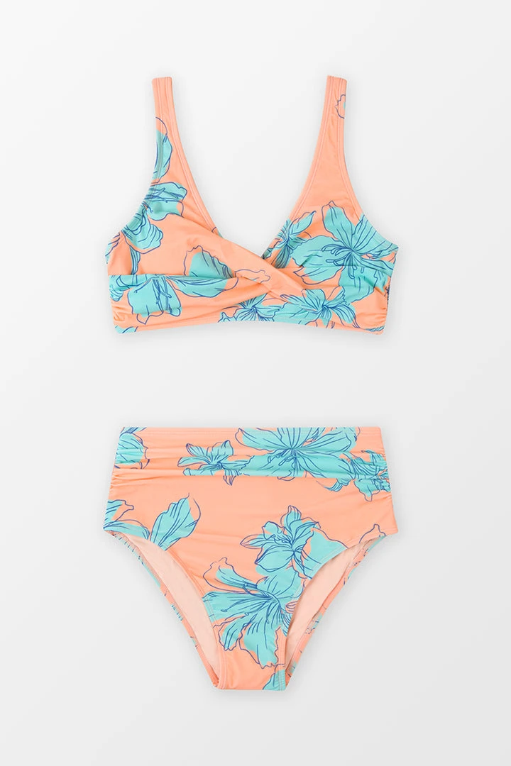 Fun and flirty, we are loving this bikini set for the summer babes! It features an allover floral print, crisscross wrap front to add a sexy flare, and a shirred high-rise waist for a flattering fit.