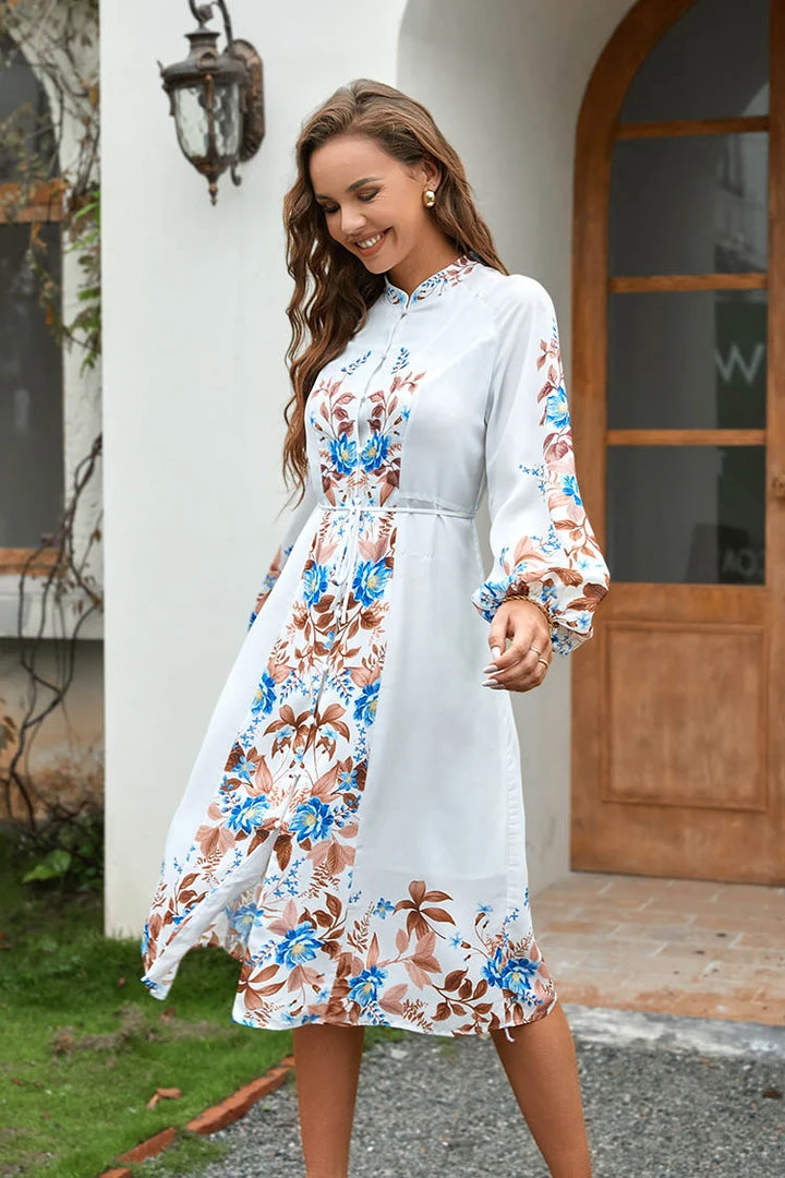 Our Germaine Shirt Collar Tea Length A-Shape Dress is the one to wear this summer. Detailed with shirt collar and floral print that’s perfect for this beach season.