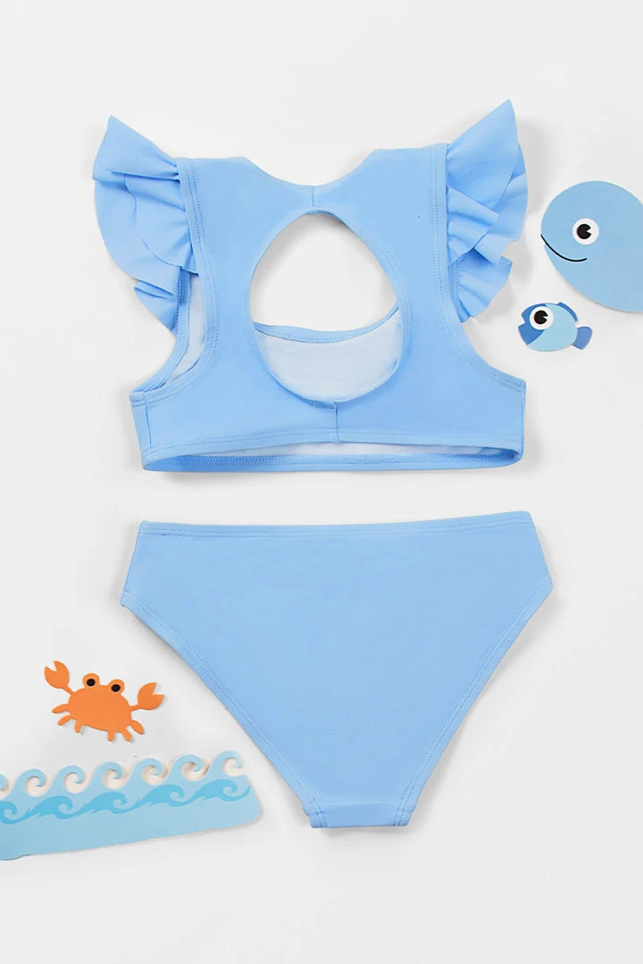 Say hello to your little girl’s new favorite swim set: Joyful Retro Ruffled Sleeve Bralette and Hipster Set. The mini ruffled sleeves and the back cutout are the highlights of the bralette bikini top. Pair with the matching mid-rise hipster bottom or her favorite style of bottoms.