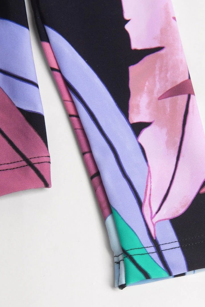 The swimsuit is made for your little one’s sunny outings thanks to the full coverage of the crew neck and long sleeves. The solid-color bikini bottom has a standard-rise hipster silhouette with standard bum coverage. It is designed to match Mama for the best summer ever.