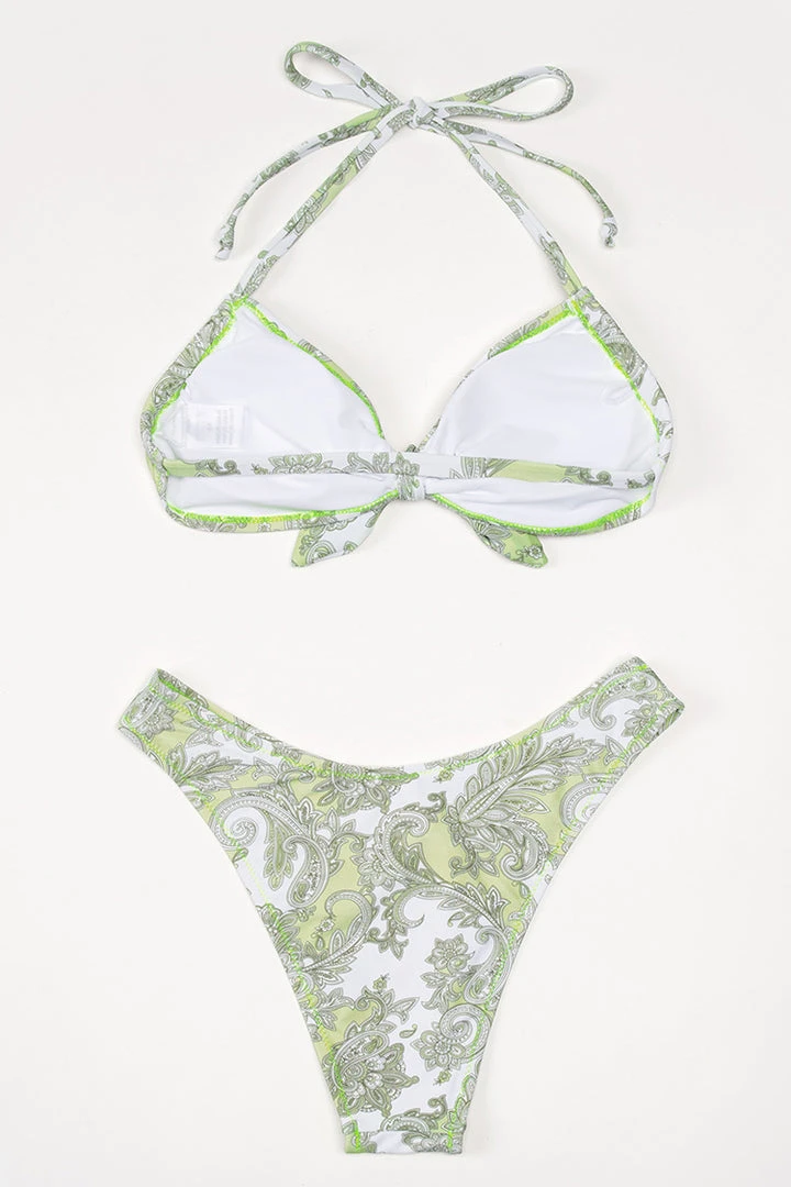 Embrace your free spirit in the Hannah Paisley Halter Low Waisted Bikini. This halter bikini features a lively paisley print with all the summery feels. The bikini bottom features a classic low-rise silhouette and cheeky cut for a look that’s perfect to wear all summer long.