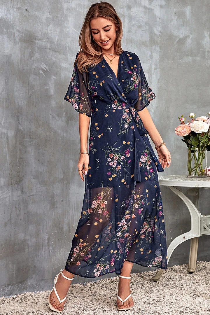 Ensure your look is contemporary and fresh this season with our V-neck Maxi Lace Up Dress. Featuring a v-neck front detail and floral pattern, this dress can easily be dressed up or down.