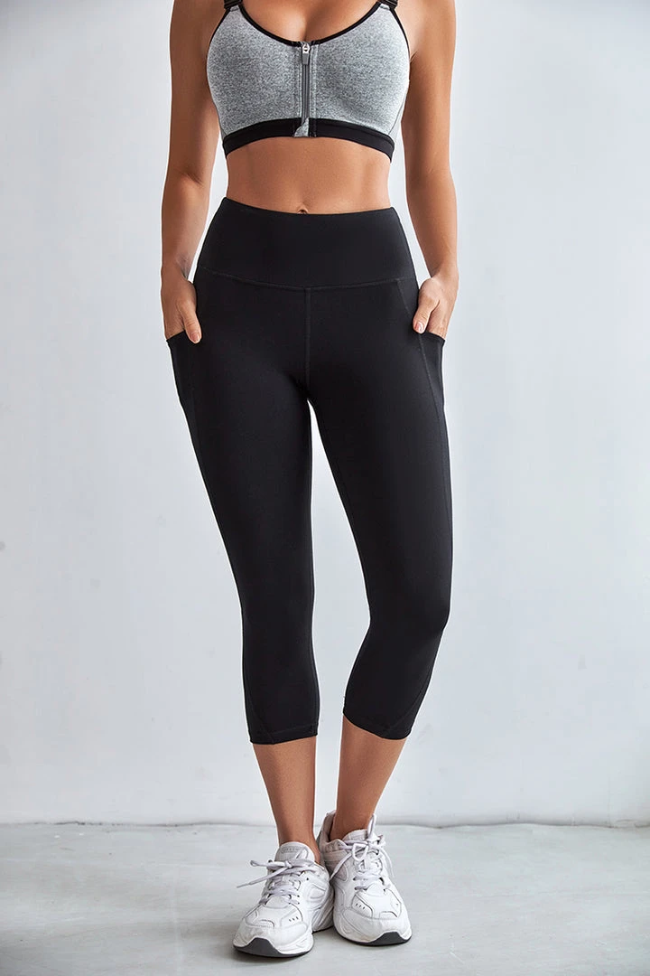 Give your active wear collection a chic update with this Irina Black Capris Leggings. Featuring a flattering high waisted fit, team this leggings with the sports bra for the perfect workout look.