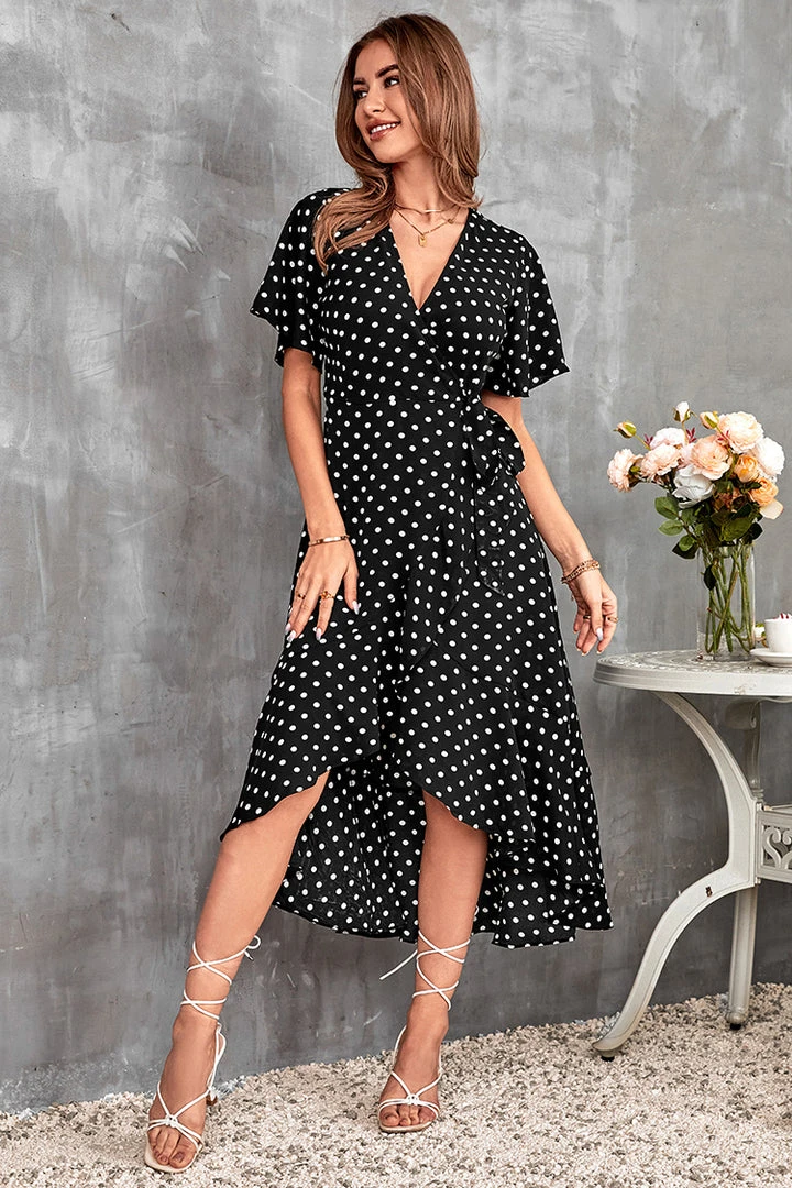 Step out in style with Short Sleeve Mid Length Lace Up Black Dress. Detailed with v-neck and mid length . It’s perfect for your next event.