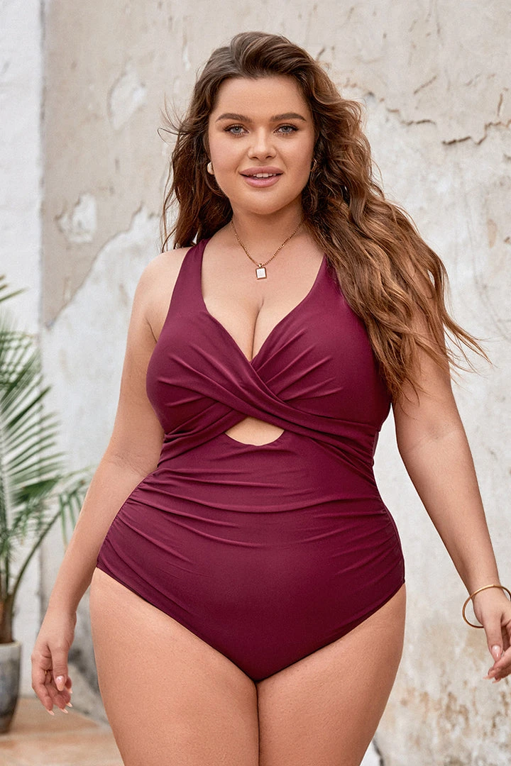 Treat yourself to the flattering fit of this feminine swimsuit. The molded twist front defines your curves, and the cutout at the bust emboldens this curve-skimming one piece.