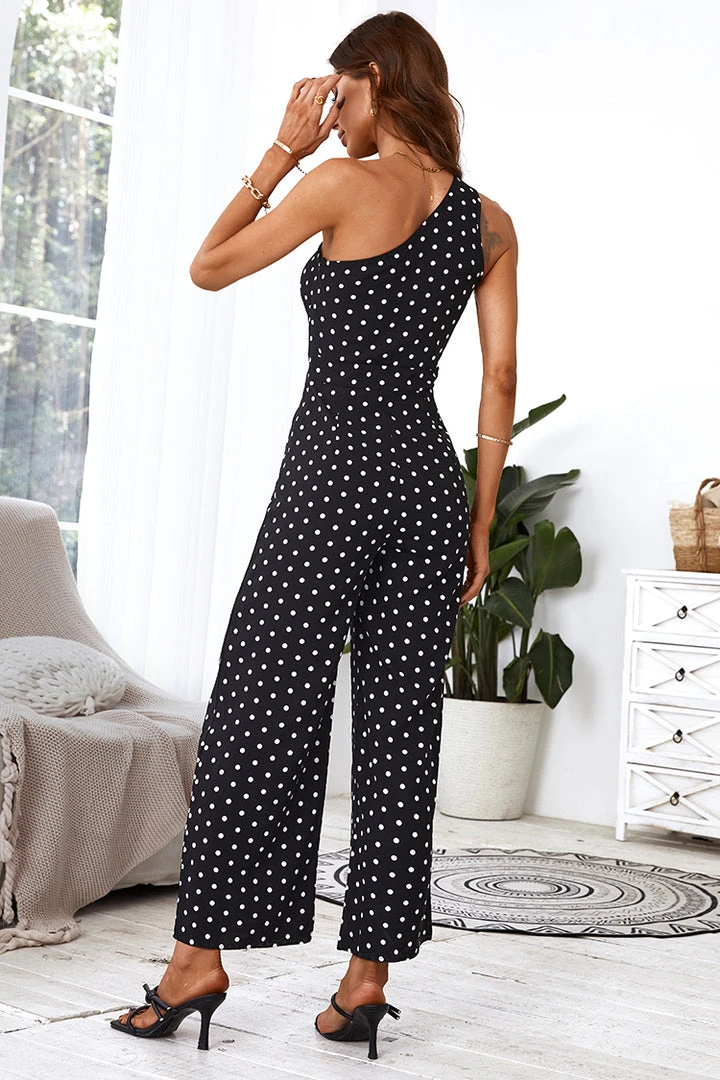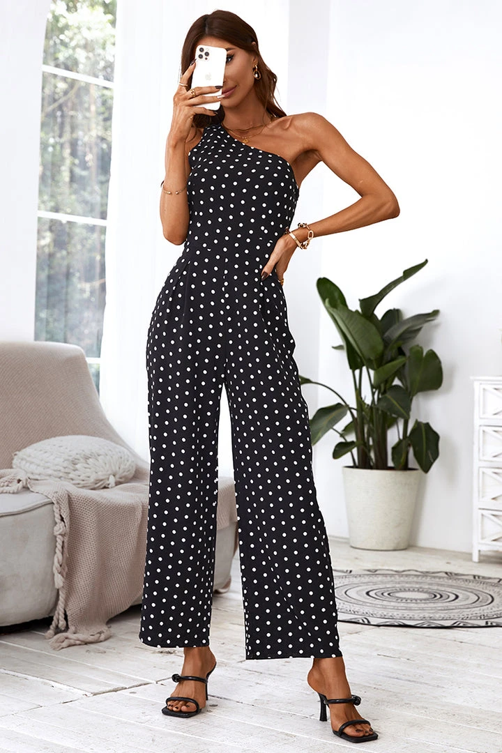 Jump into summer fun with the One Shoulder Dots Straight Jumpsuit. Featuring a dots prtint and one shoulder design. You can’t go wrong with this easy to wear style.