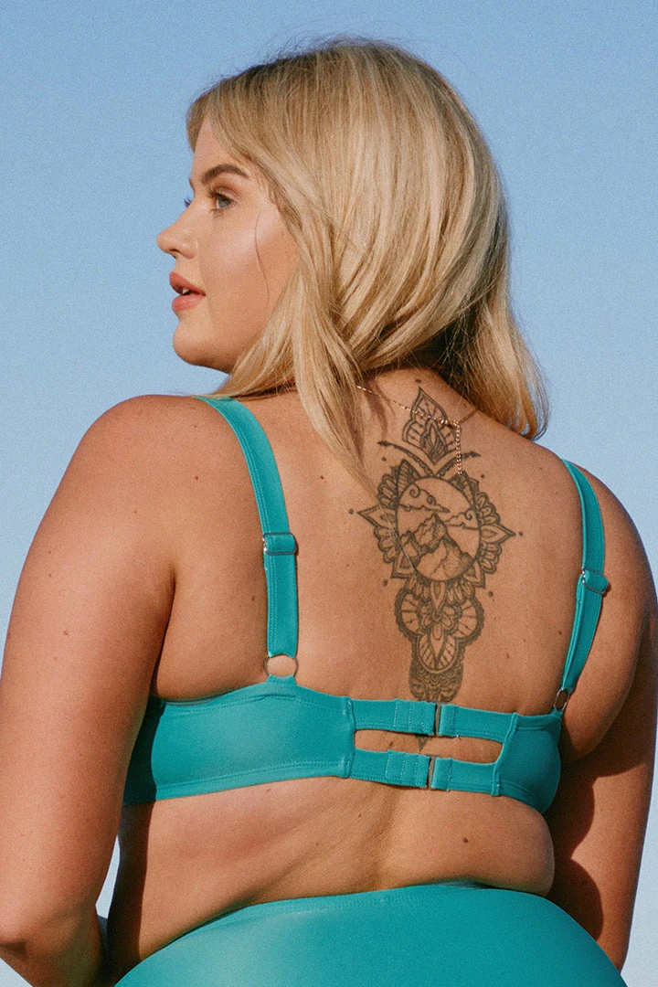 Explore the beach in this Kristin Underwire Plus Size Bikini Top. A sexy push up design with underwire will help you feel your best and supported all day long. Complete the look with Kristin Tie Front Plus Size Bikini Bottom.