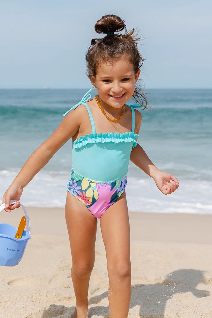Style your girl with this adorable Lanirescert Girls Swim One Piece Swimsuit. Featuring a square neck and ruffles detail, this functional swimsuit will make sun protection a breeze and is perfect for an activities-filled day on the beach.