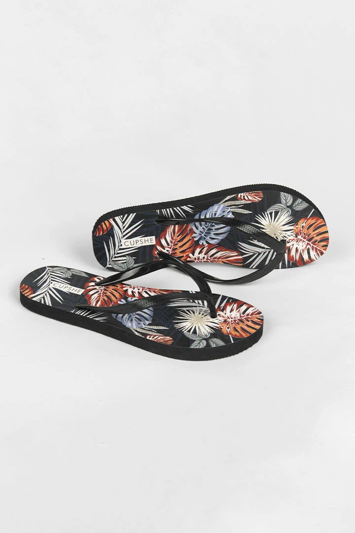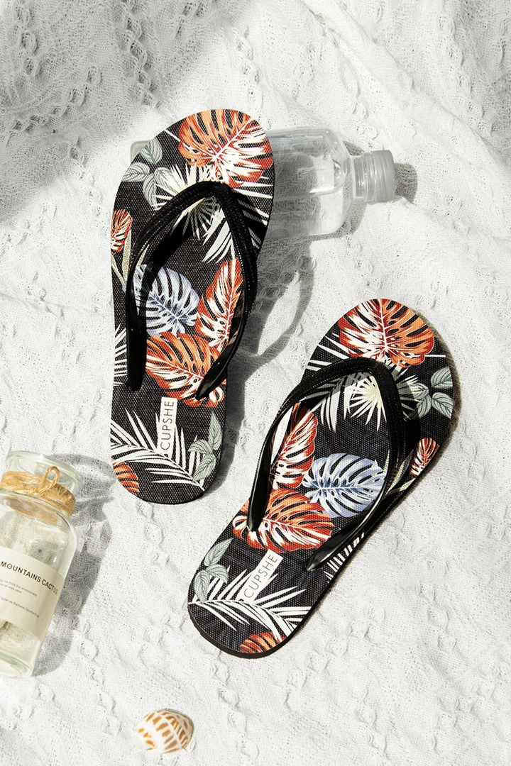 Our Leopard Flip Flops is a classic flip-flop sandals make for a summer wardrobe staple; Easy slip-on design with open toe and strapless back; Comfy sole with no heel for easy wear; Tropical Prints design meets your swimsuit and summer outfit matching needs.
