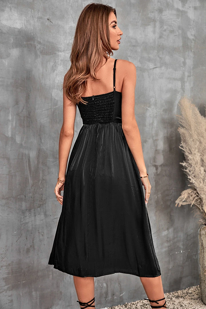 Add this dreamy Thin Straps Ruching Slip Dress to your weekend wardrobe. Featuring thin straps and a elastic waist. Team with heeled mules and a tote bag for a weekend outing.