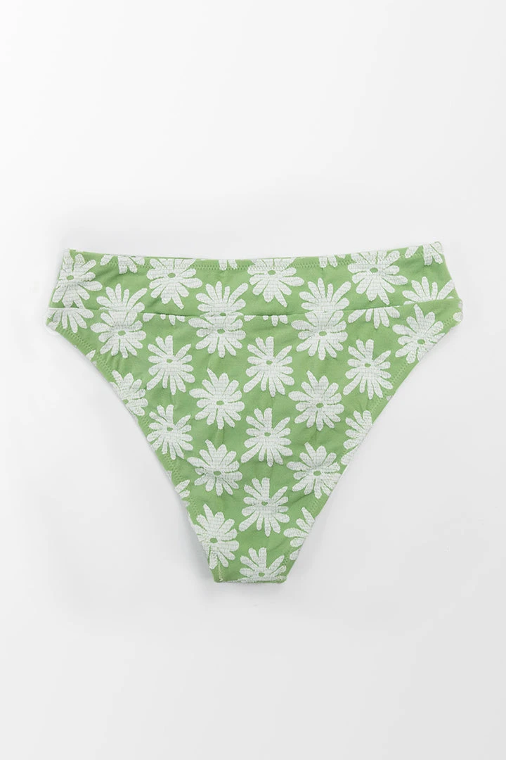 Our Light Green Floral High Waisted Bikini Bottom is super cute! This green floral bikini bottom features high waisted on textured fabric. Mix and match with the Light Green Floral Bandeau Bikini Top to complete the look.