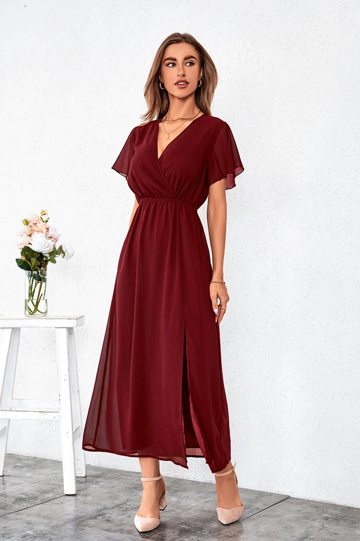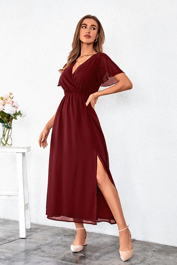 For those date nights ahead, this Short Sleeve Tie Waist Ruching A-Shape Dress is perfect to wear! This sweet dress has a V-neck with short sleeves. The perfect dress to wear out and about in town.
