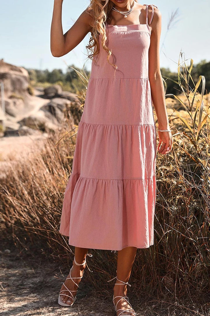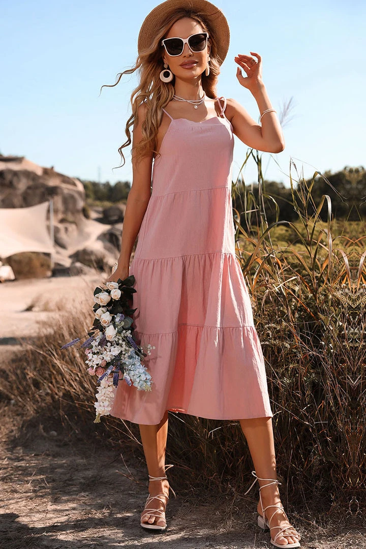 Mavis Thin Straps Pull Over Slip Dress adopts the design of thin shoulder straps, and its shoulder straps are adjustable, which can better adapt to your figure. Its waist design is relatively loose, which will be very comfortable for you to wear.