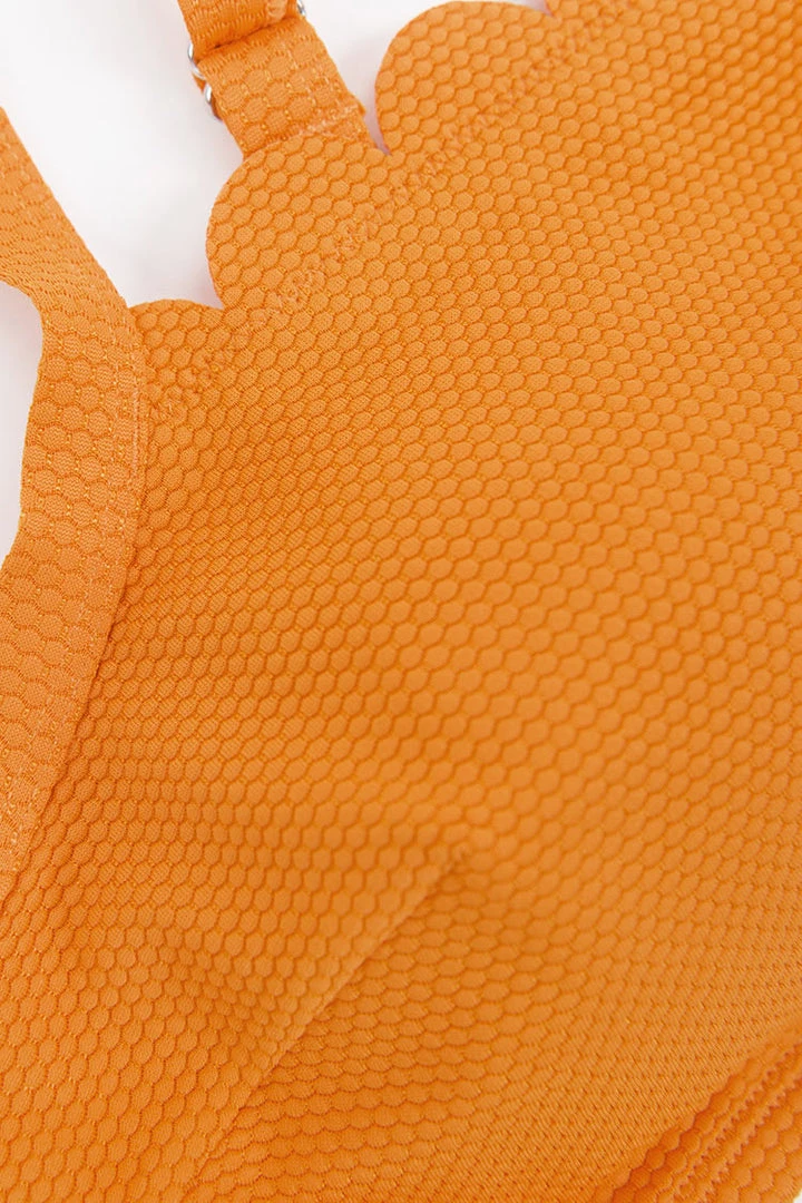 Mayra Scalloped Back Hook Plus Size Bikini Top is everything you need for a beach getaway. Wide straps falls to a square neckline with scalloped on the edge, soft bralette and back hook for your comfort.Pair it with our matching bottom.