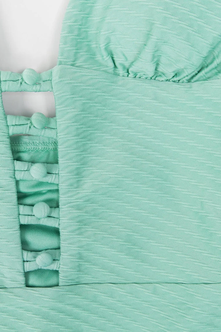 Feel your best in the Melinda Hollow Out Halter One Piece Swimsuit. This figure-flattering bathing suit has feminine hollow out details you’ll love. Self-tie halter neck ensure the perfect fit.